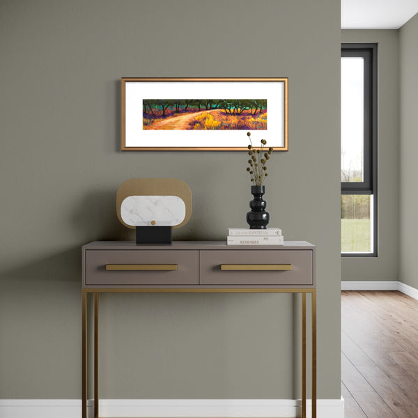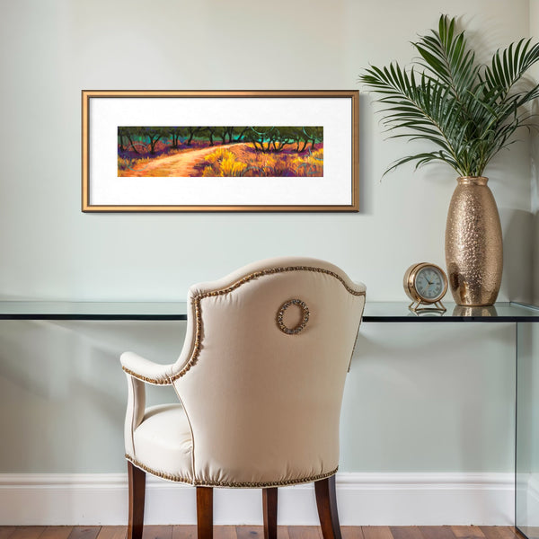 Framed size: To be framed in 12" x 30" frame with mat