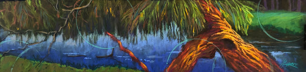 Bent with time and experience, the willow at water's edge remains a giver of shade and beauty.