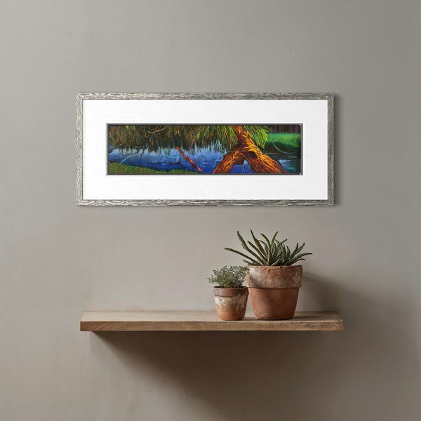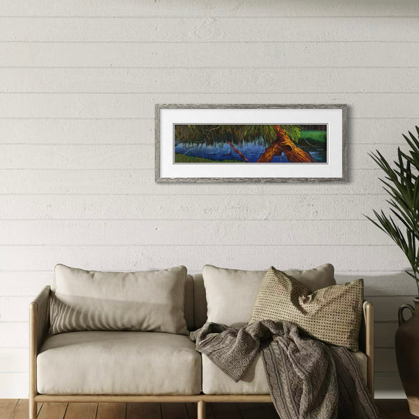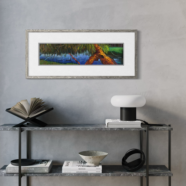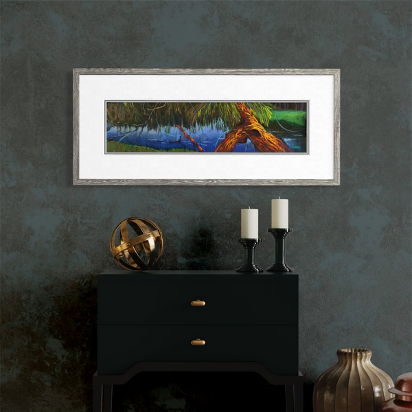 Framed size: 12" x 30" frame with double mat