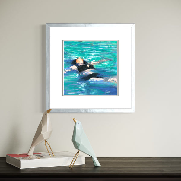 Room settings show the art in a virtual space. Actual frame and mat may vary slightly.